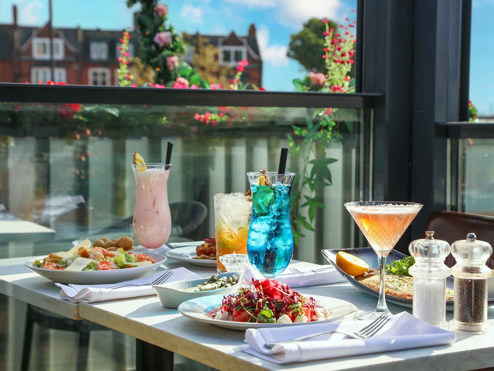 On Sundays, enjoy a warm, family-style Sunday Roast — tender meats, seasonal veg, and Yorkshire puddings, served in our elegant dining room or out on the sunny terrace.